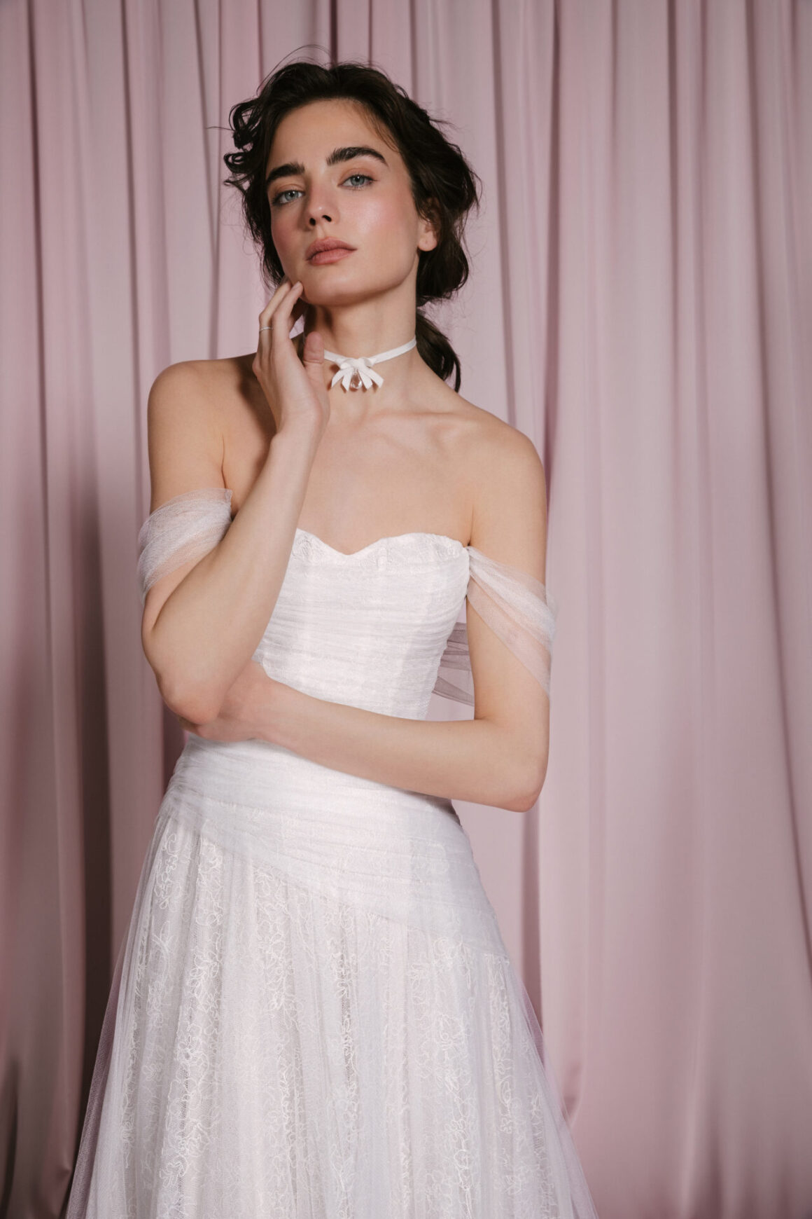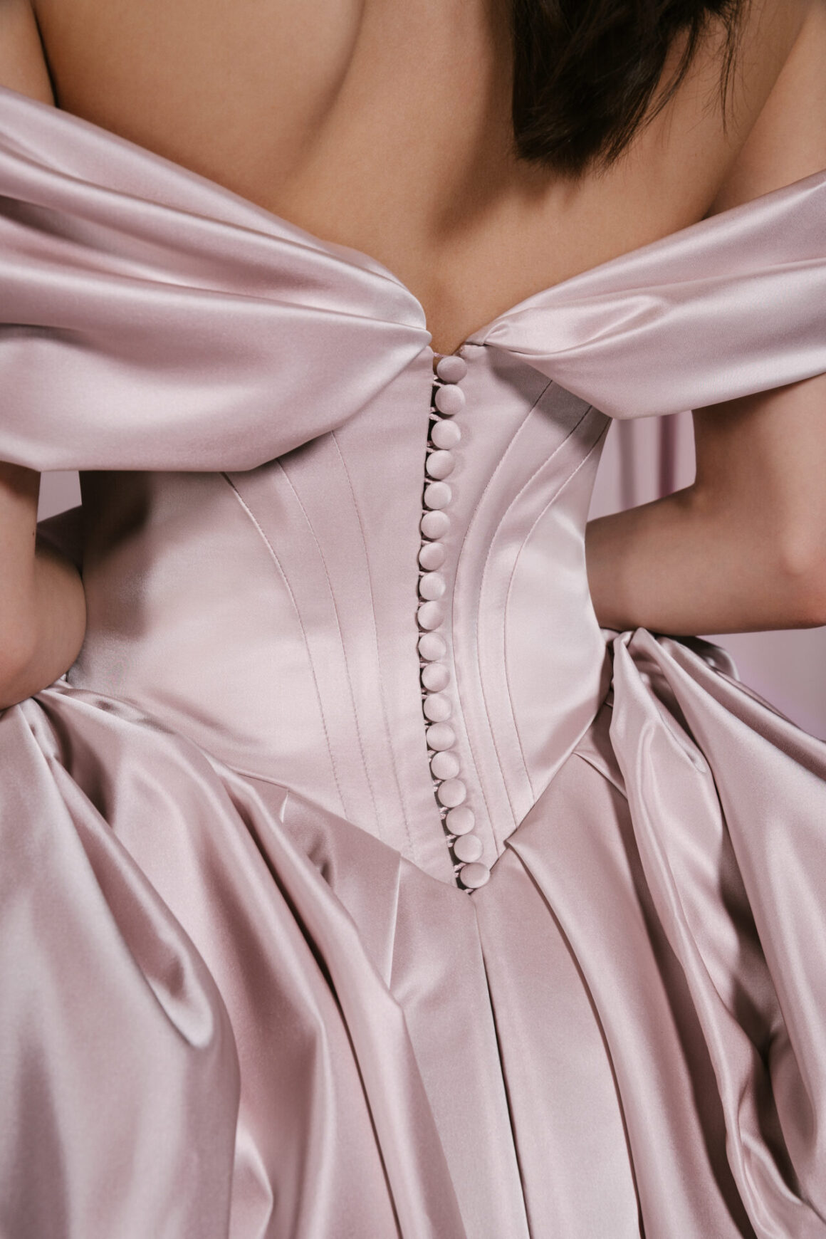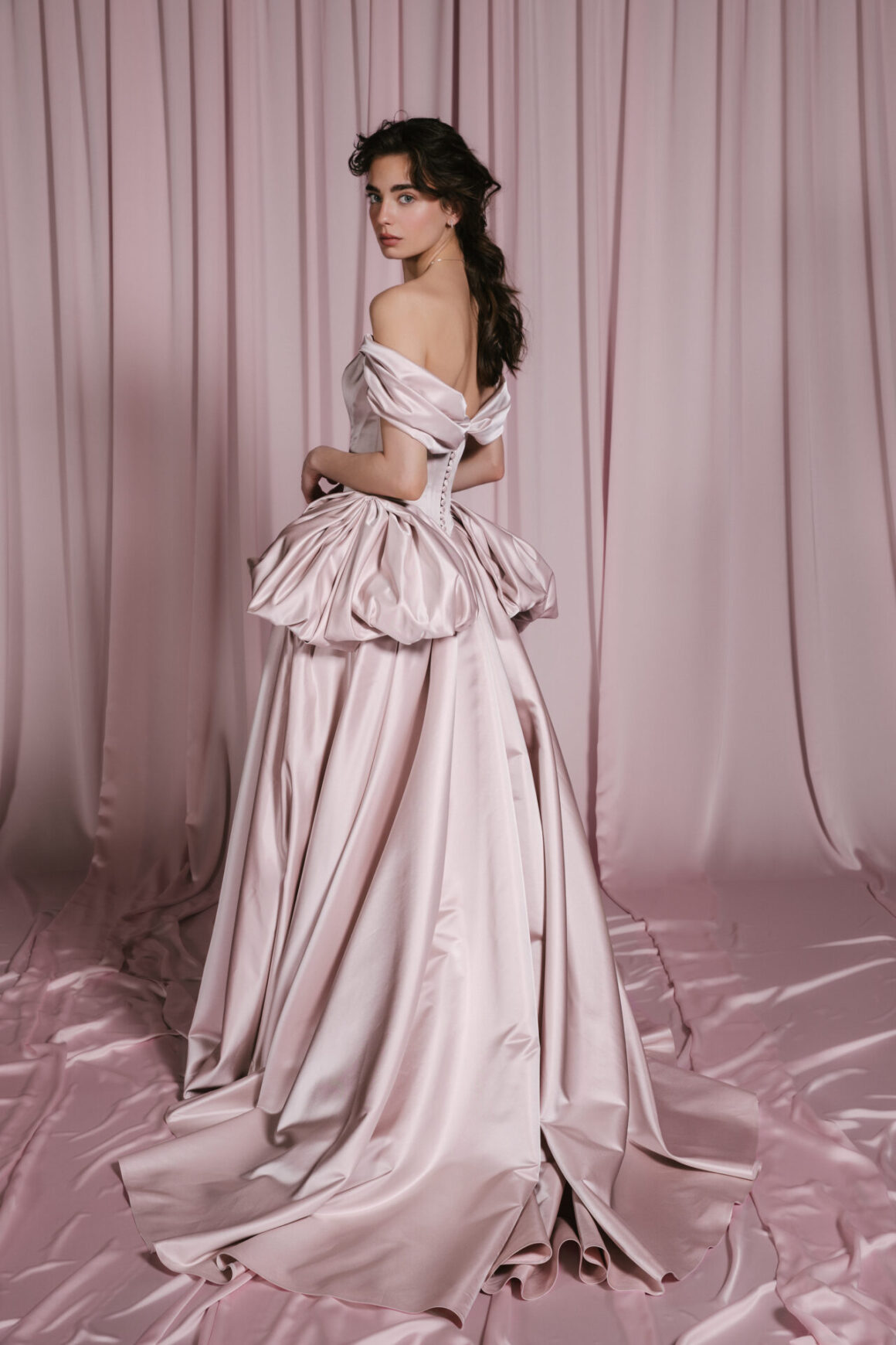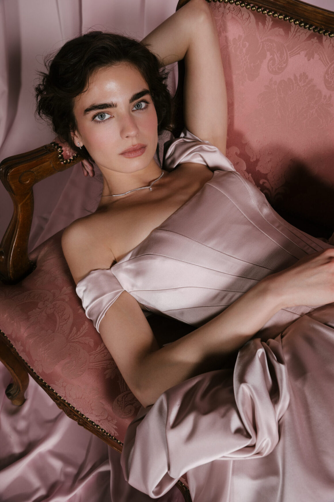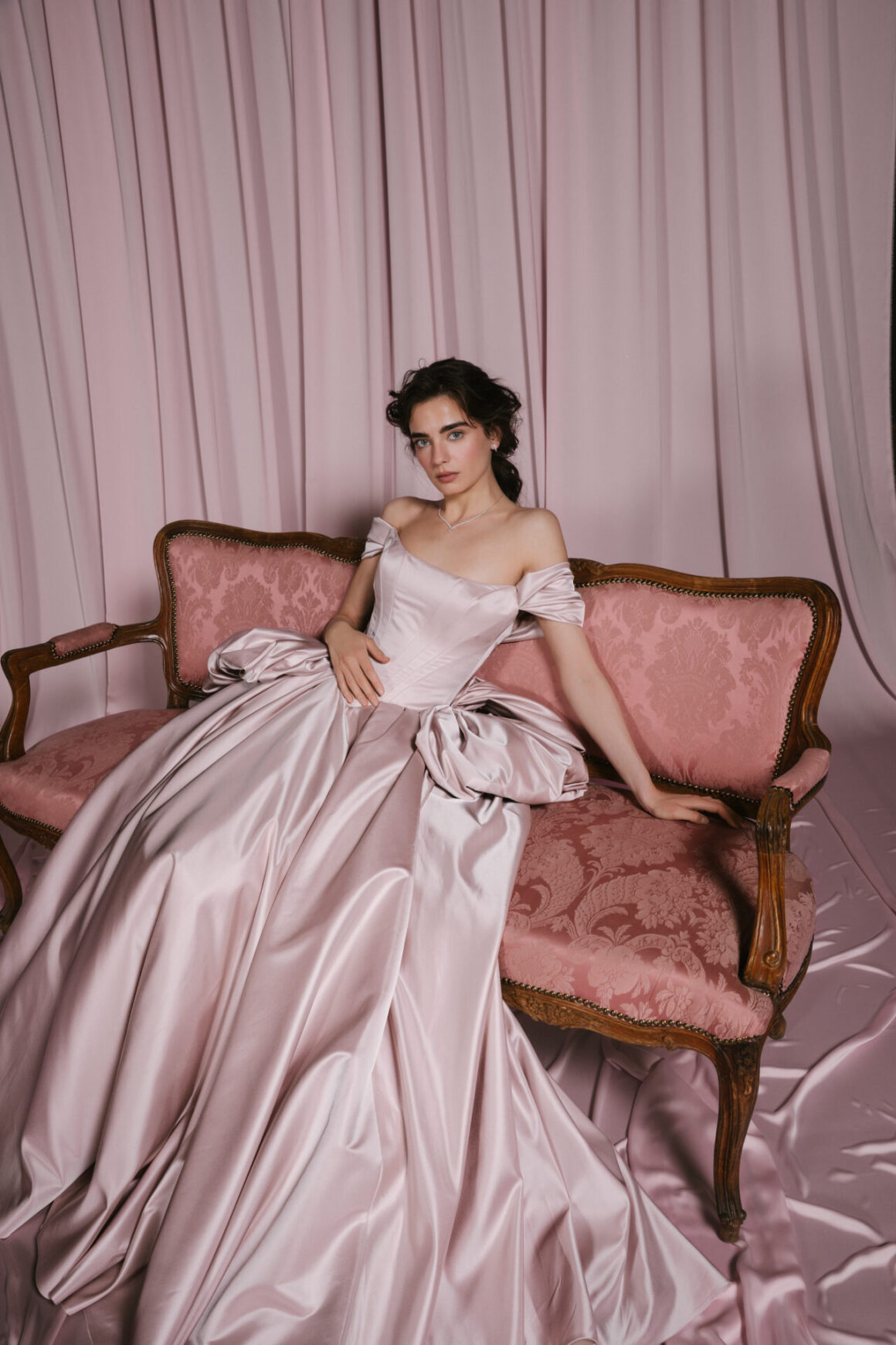 Another distinctive feature of the collection is that each gown has been given its own name, further reinforcing the sense of character and personal connection between the dress and its wearer. Many of these names were inspired by the aristocratic atmosphere of the world of Bridgerton, lending the collection an additional layer of narrative refinement.