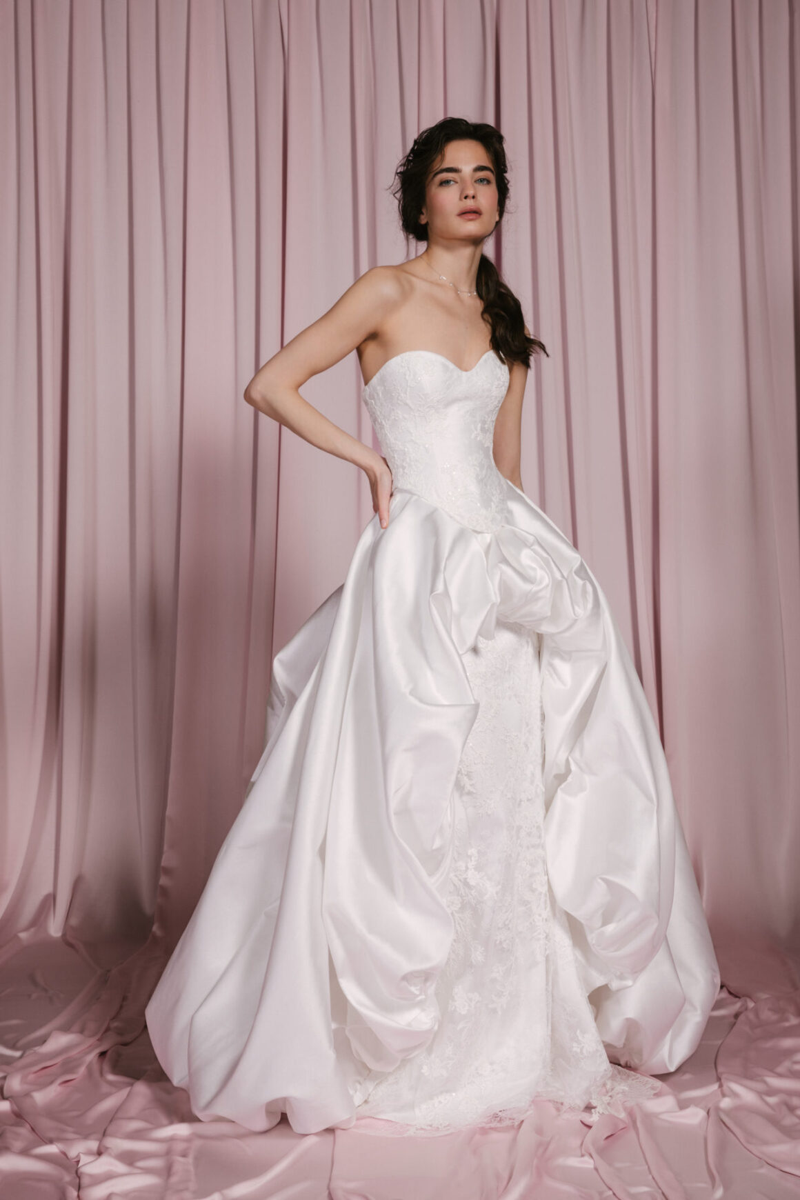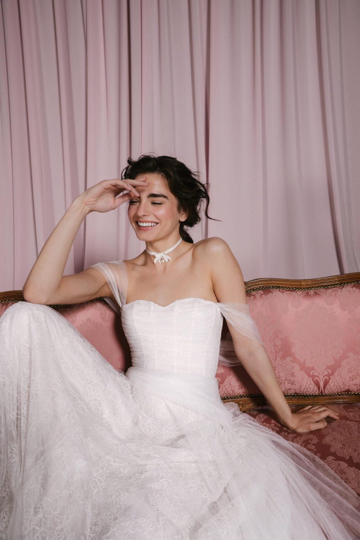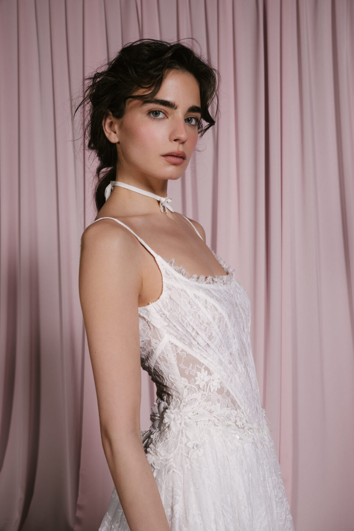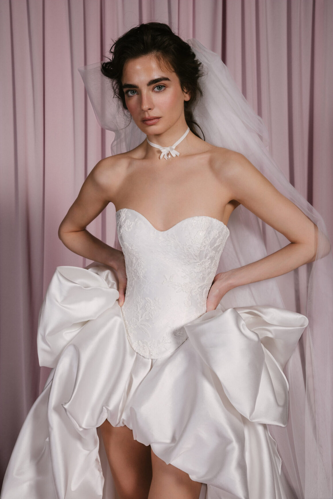 Another distinctive feature of the collection is that each gown has been given its own name, further reinforcing the sense of character and personal connection between the dress and its wearer. Many of these names were inspired by the aristocratic atmosphere of the world of Bridgerton, lending the collection an additional layer of narrative refinement.