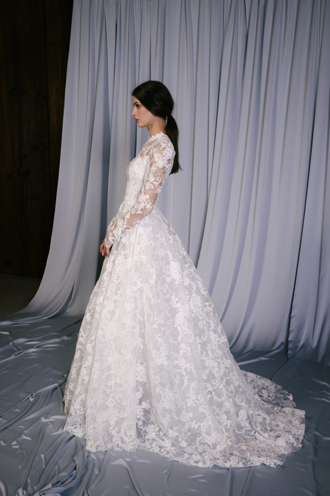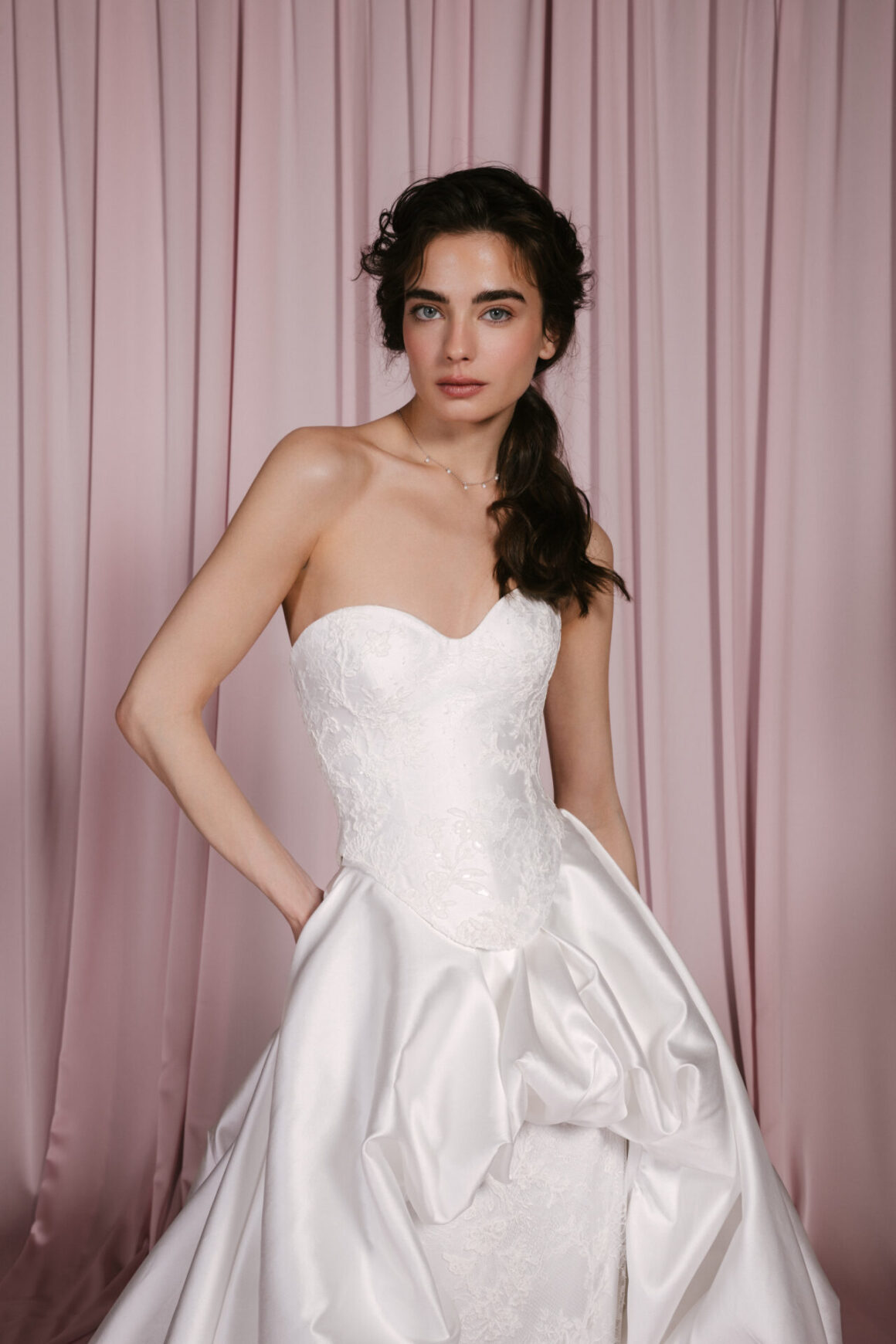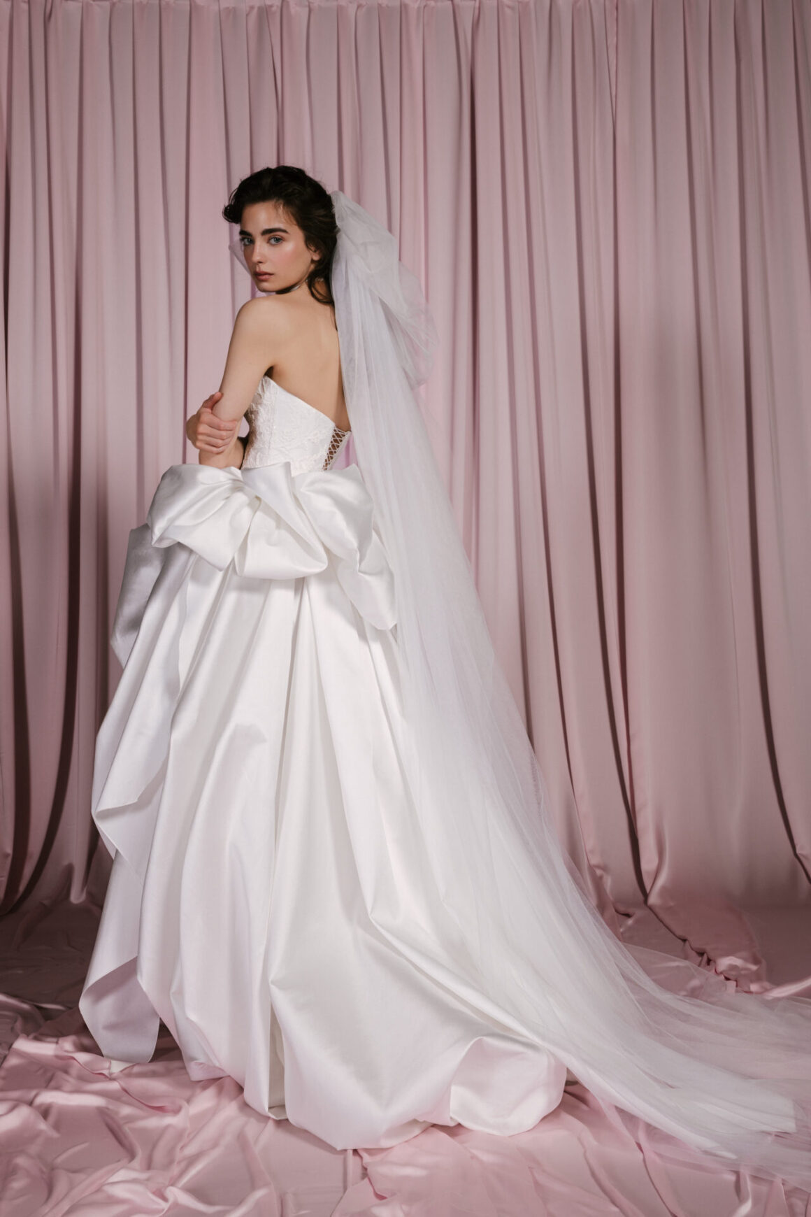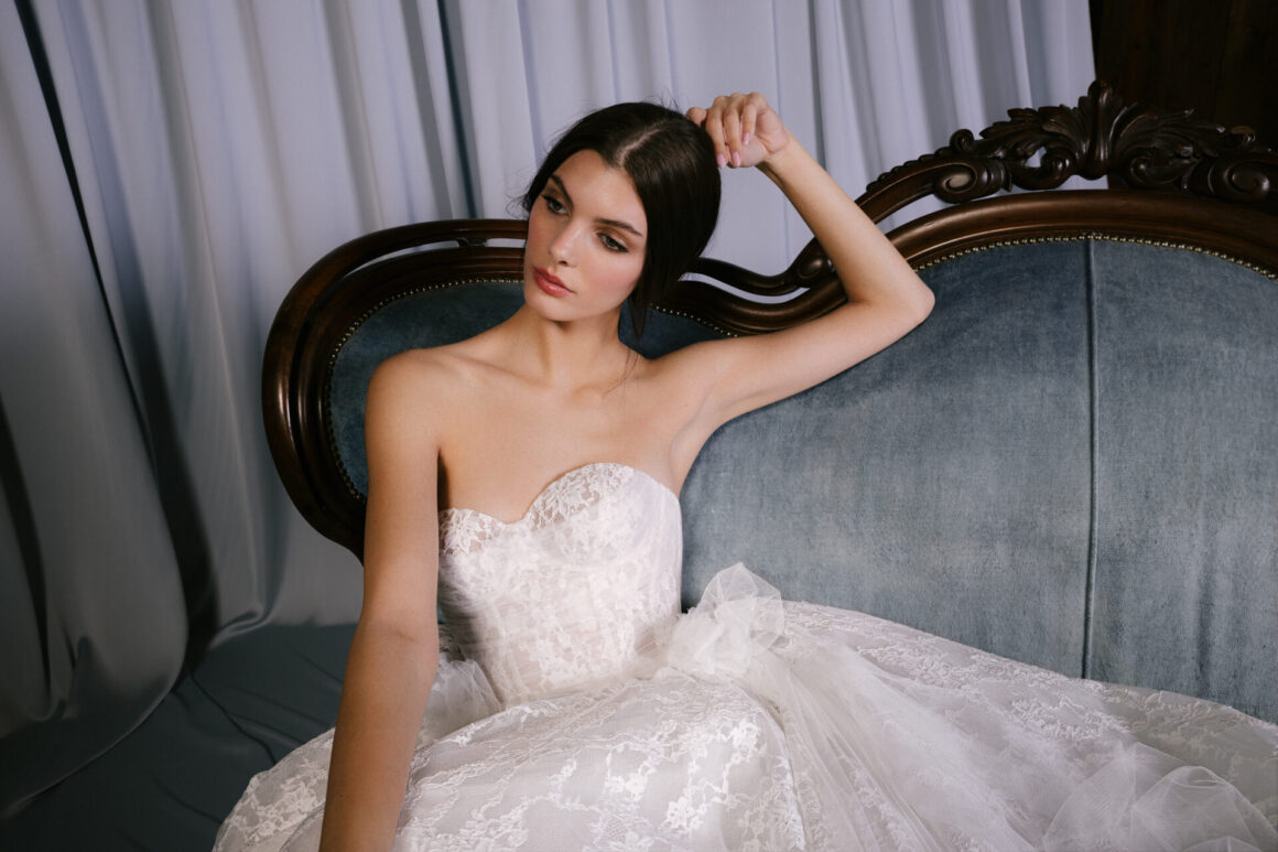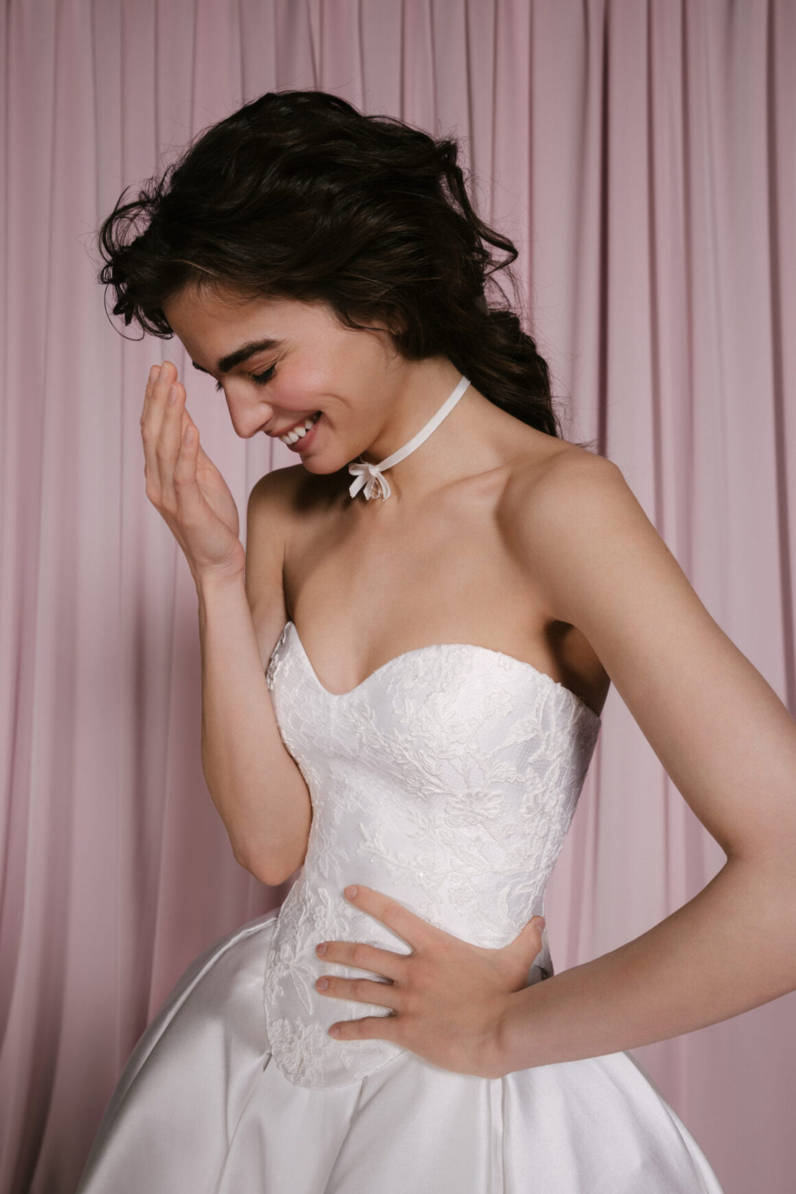 Another distinctive feature of the collection is that each gown has been given its own name, further reinforcing the sense of character and personal connection between the dress and its wearer. Many of these names were inspired by the aristocratic atmosphere of the world of Bridgerton, lending the collection an additional layer of narrative refinement.