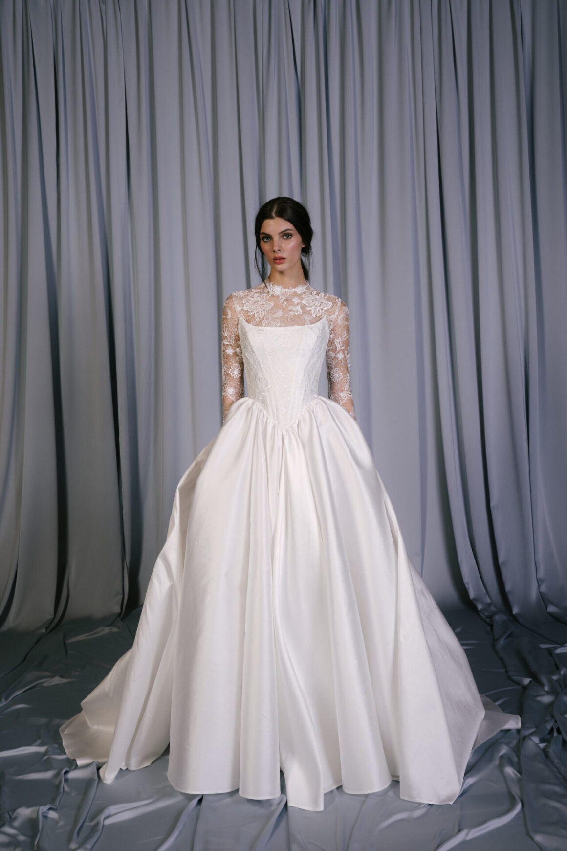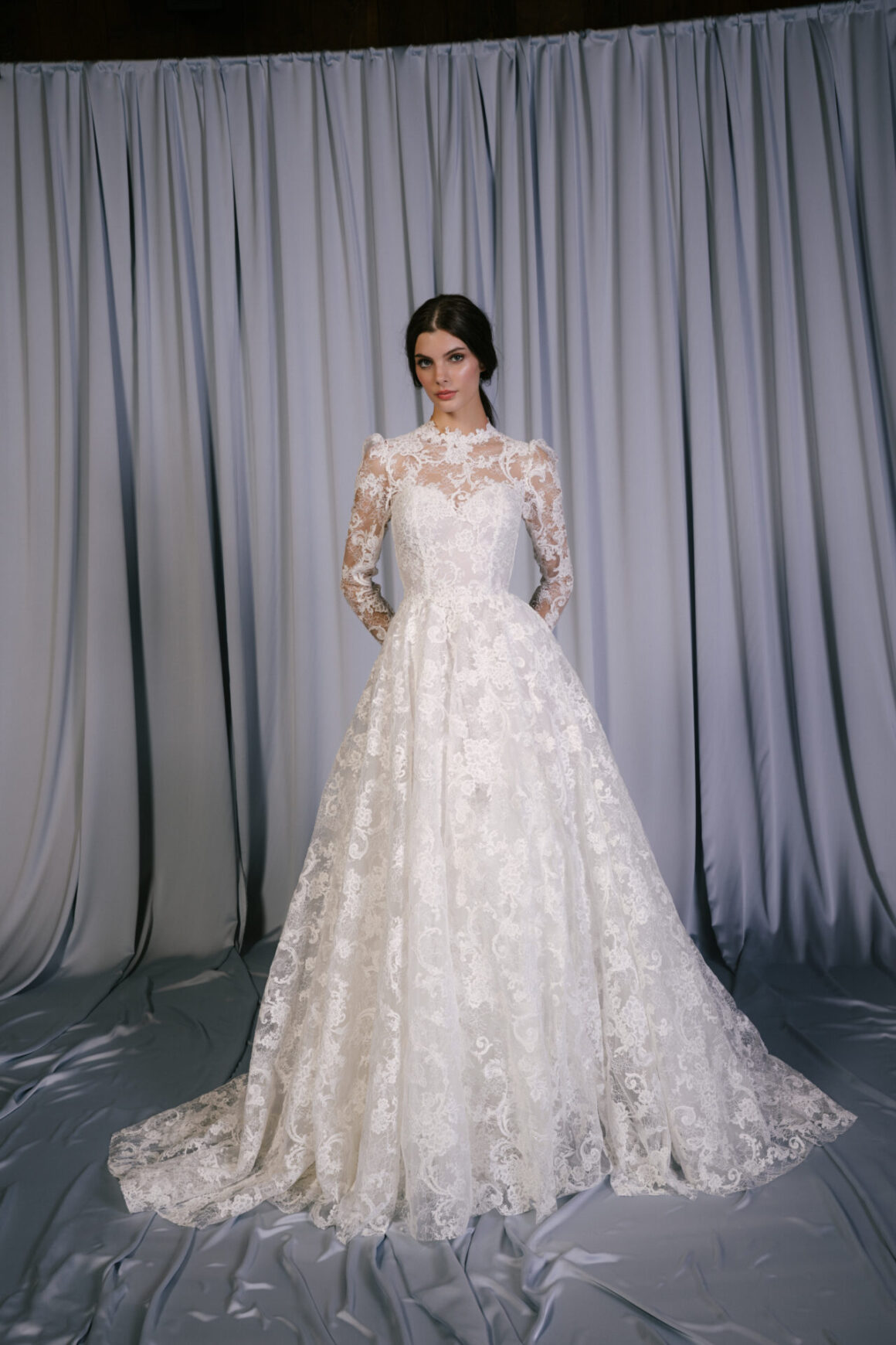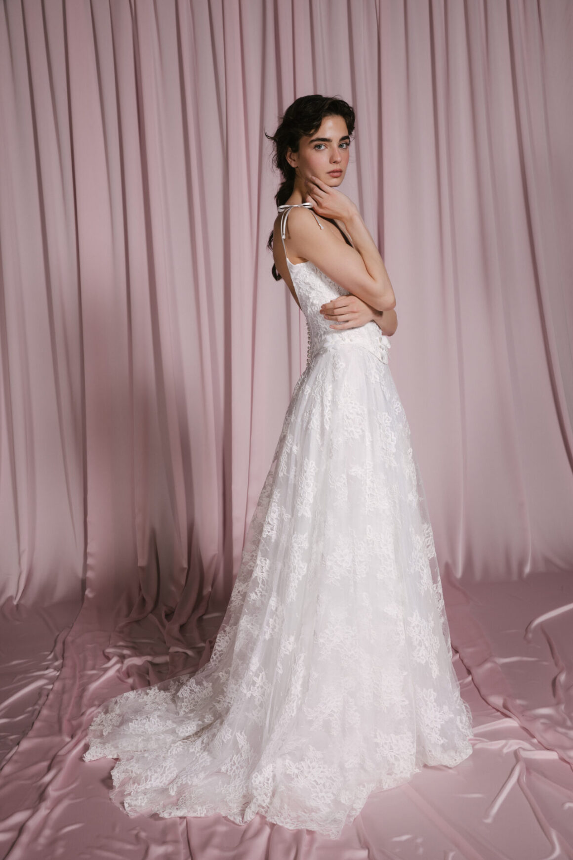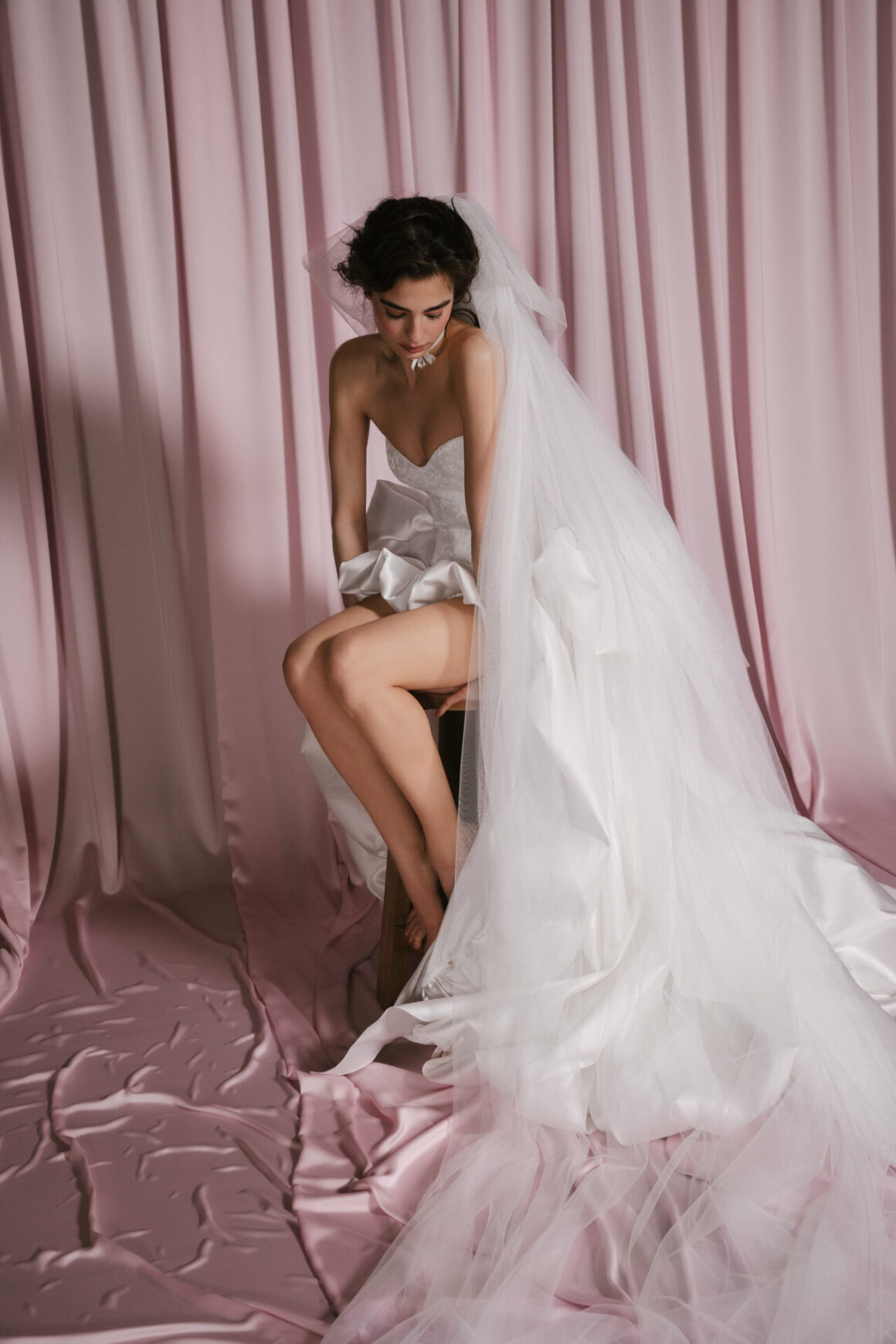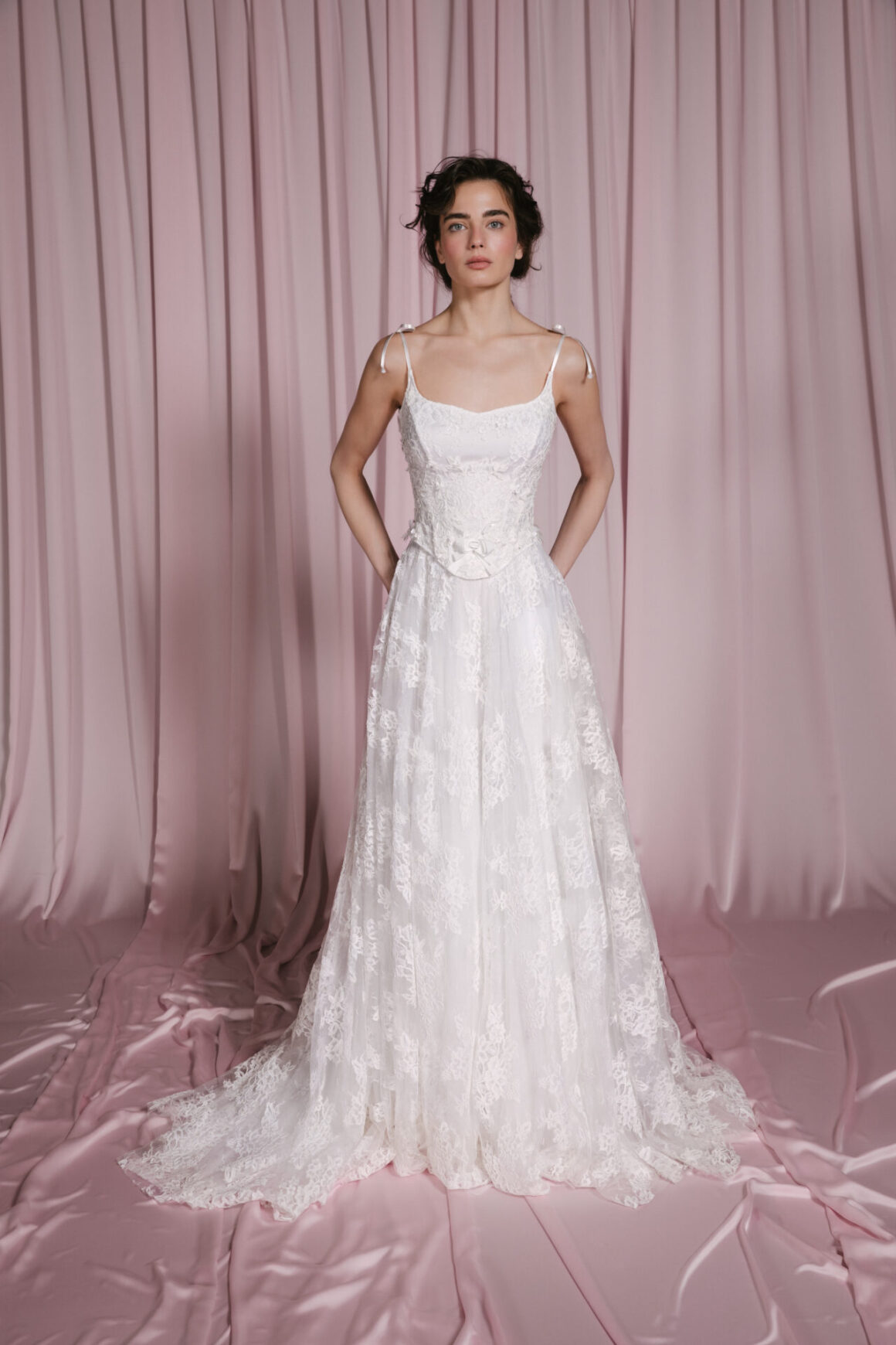 Another distinctive feature of the collection is that each gown has been given its own name, further reinforcing the sense of character and personal connection between the dress and its wearer. Many of these names were inspired by the aristocratic atmosphere of the world of Bridgerton, lending the collection an additional layer of narrative refinement.