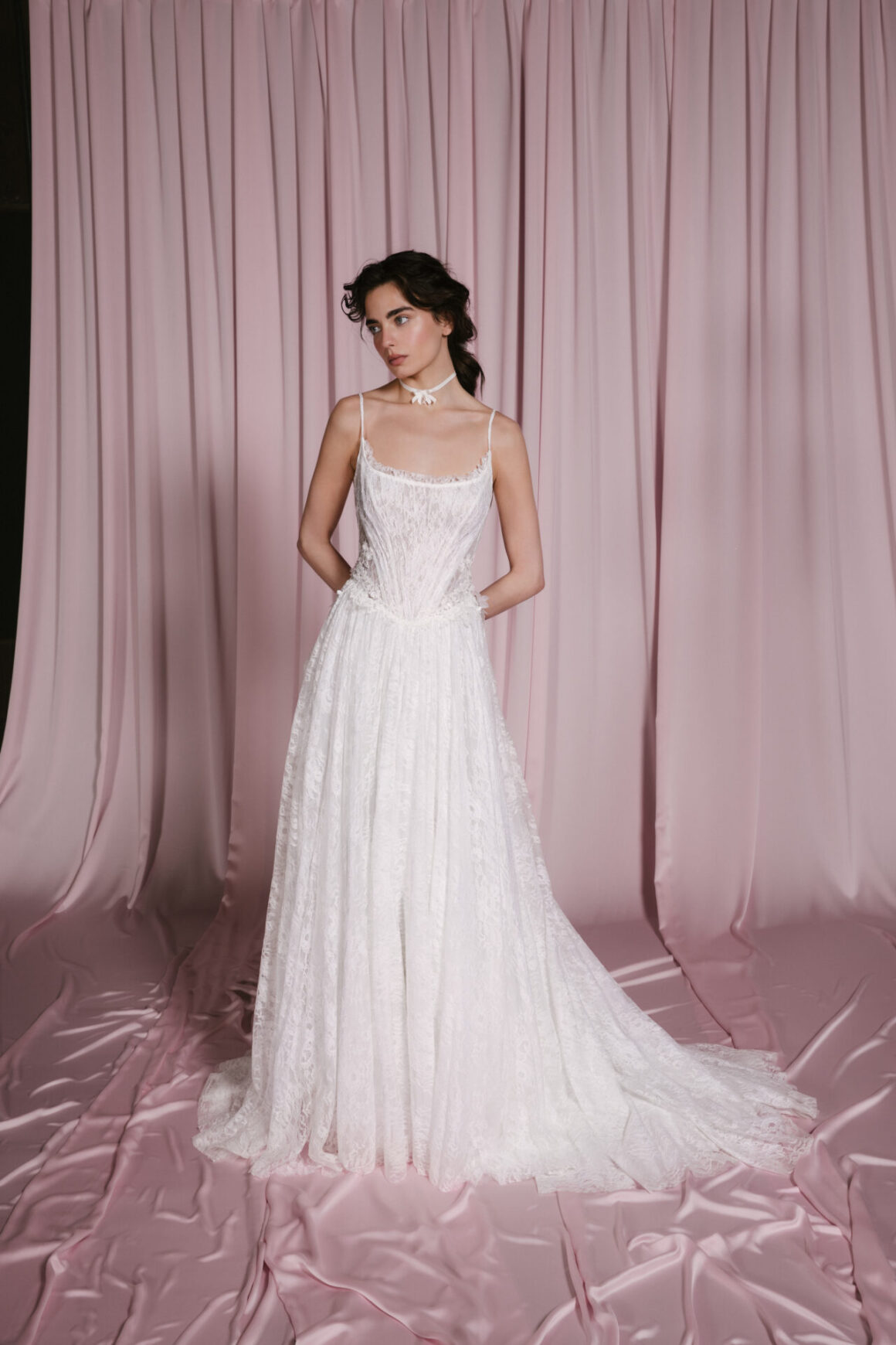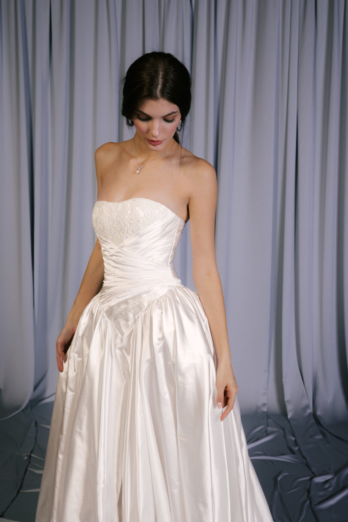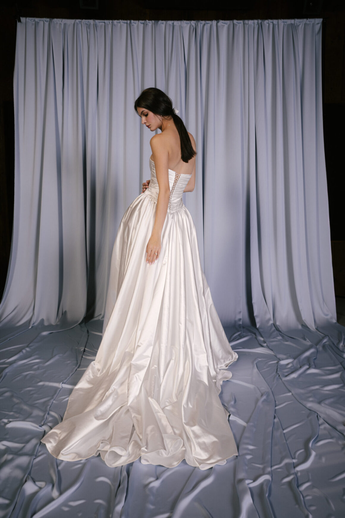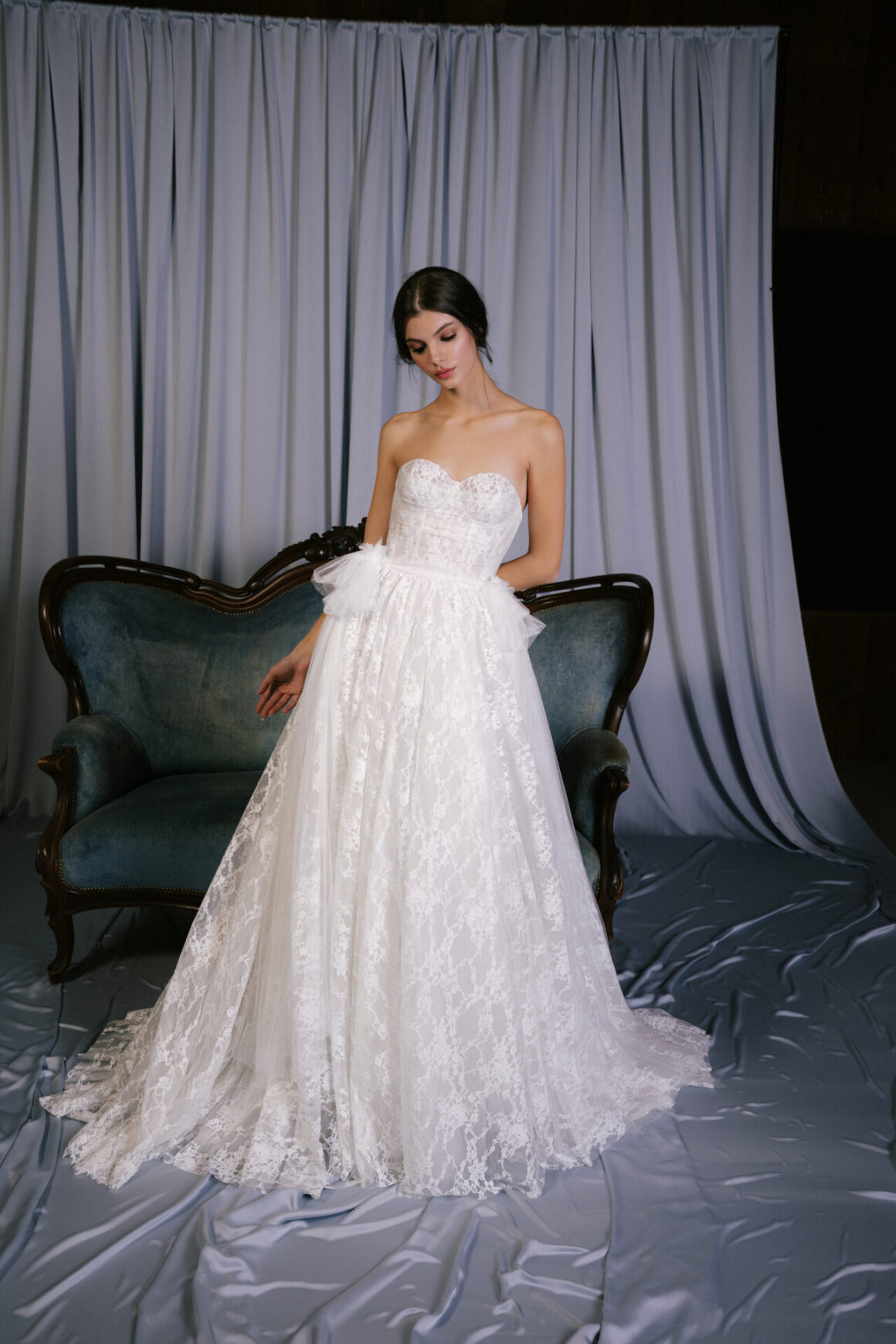 Another distinctive feature of the collection is that each gown has been given its own name, further reinforcing the sense of character and personal connection between the dress and its wearer. Many of these names were inspired by the aristocratic atmosphere of the world of Bridgerton, lending the collection an additional layer of narrative refinement.