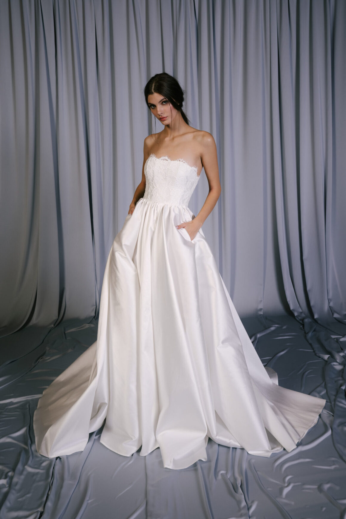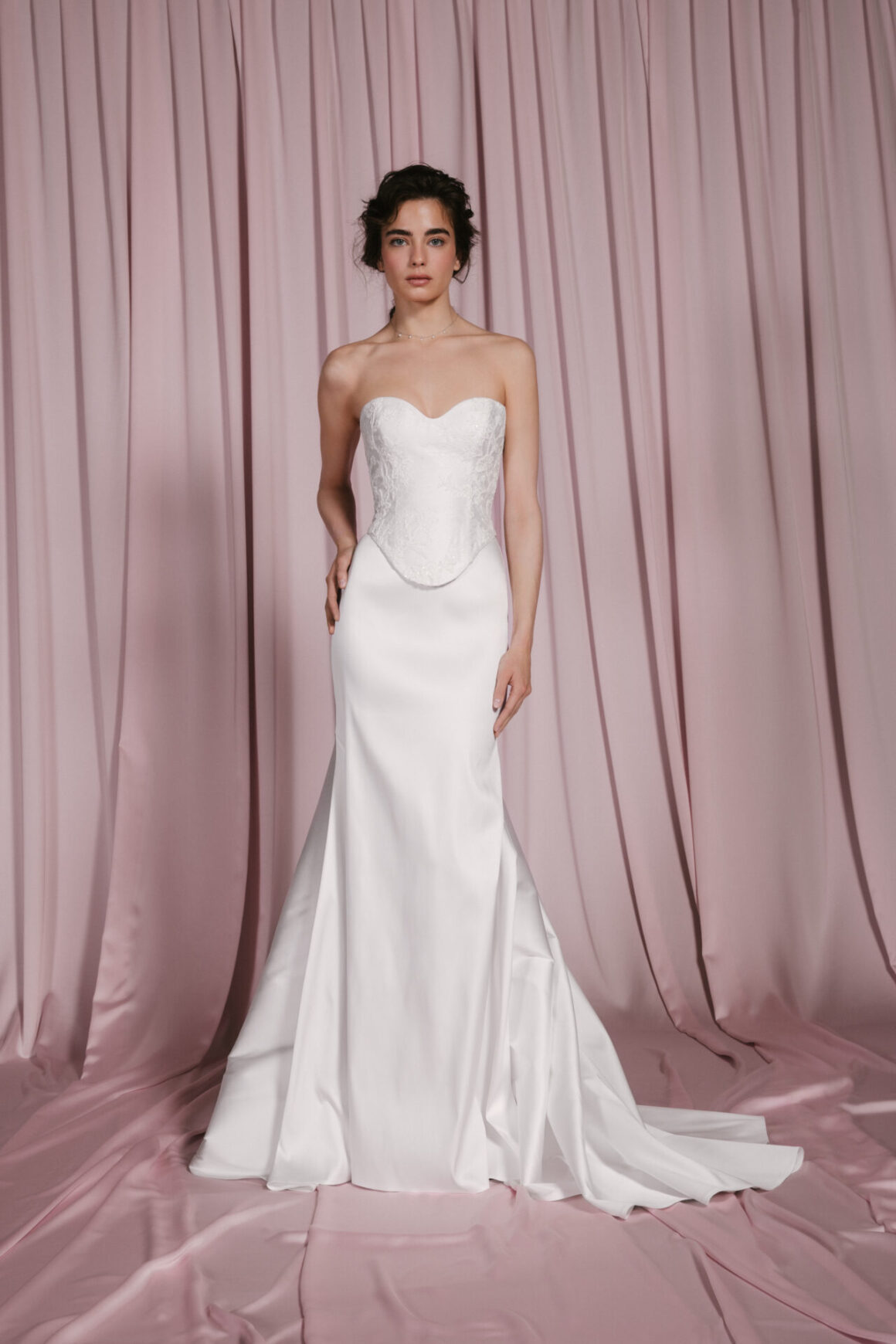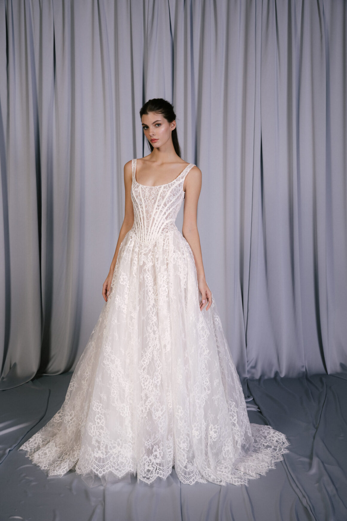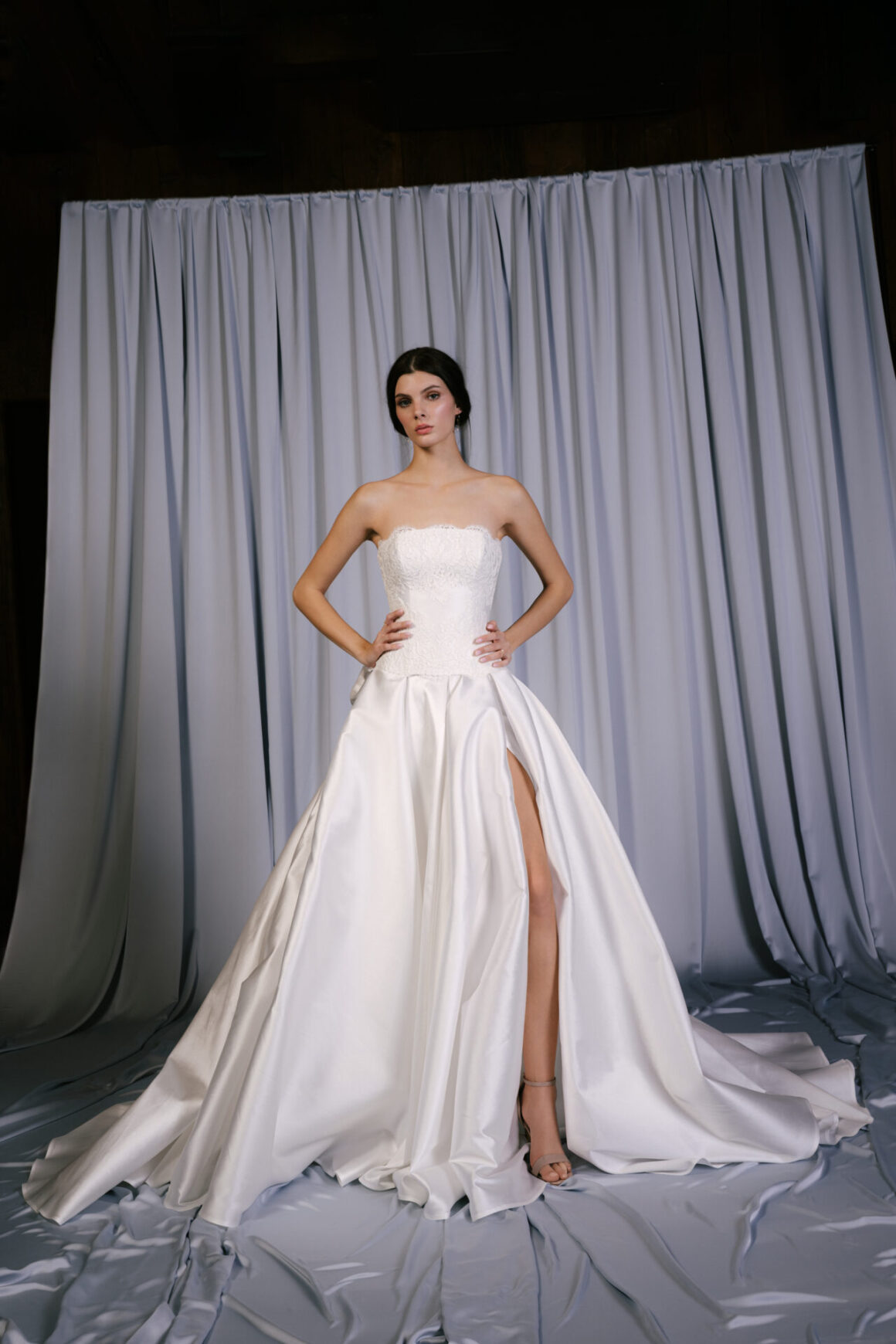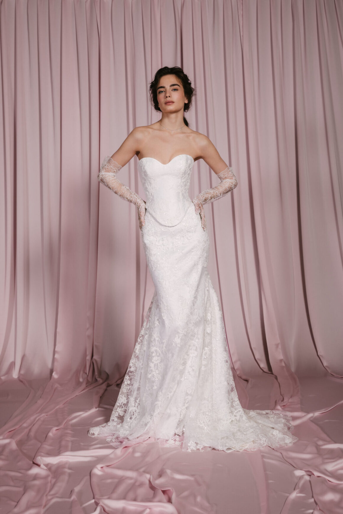 Another distinctive feature of the collection is that each gown has been given its own name, further reinforcing the sense of character and personal connection between the dress and its wearer. Many of these names were inspired by the aristocratic atmosphere of the world of Bridgerton, lending the collection an additional layer of narrative refinement.