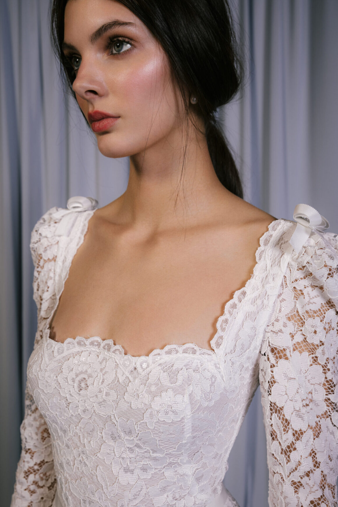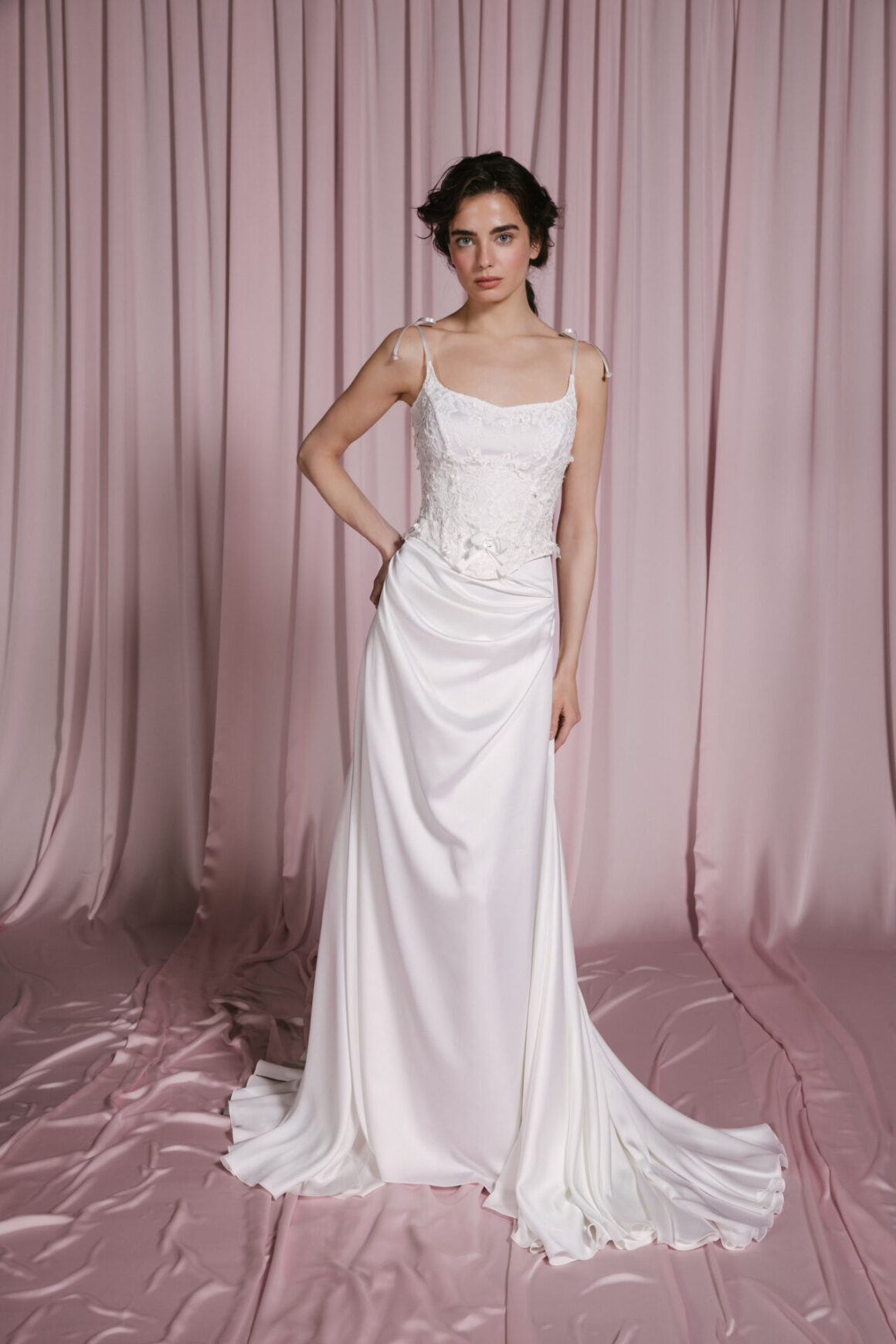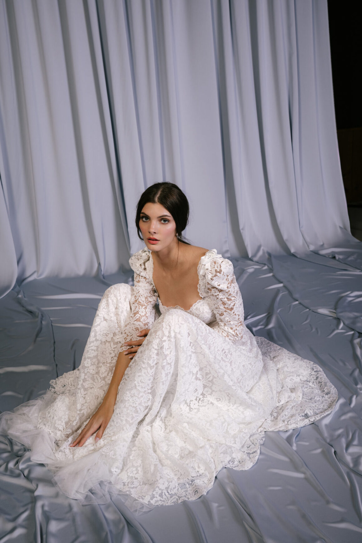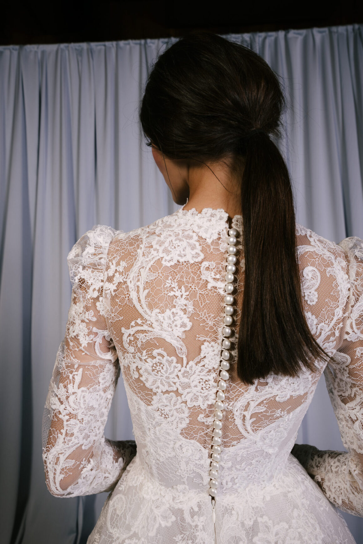 One of the defining ideas behind the collection is personalisation. For Daalarna, a wedding dress is never a finished object in itself, but the result of a shared creative process in which the bride takes an active role. Interchangeable elements, transformable details, and thoughtfully layered accessories allow each look to become entirely individual. With the addition of a different accessory or overskirt, a gown can be reimagined into a new silhouette altogether — perfect as a party dress, a ‘menyecske dress’or a piece that can continue to be worn long after the wedding day.