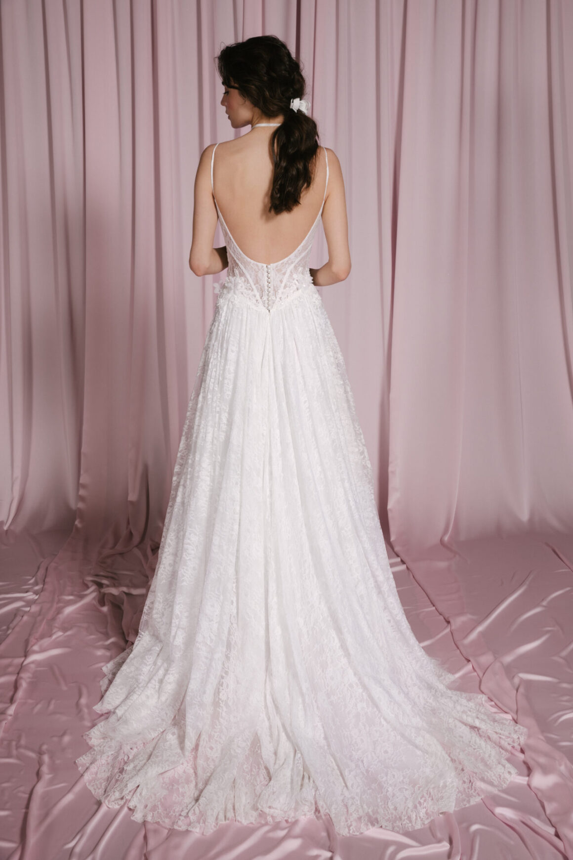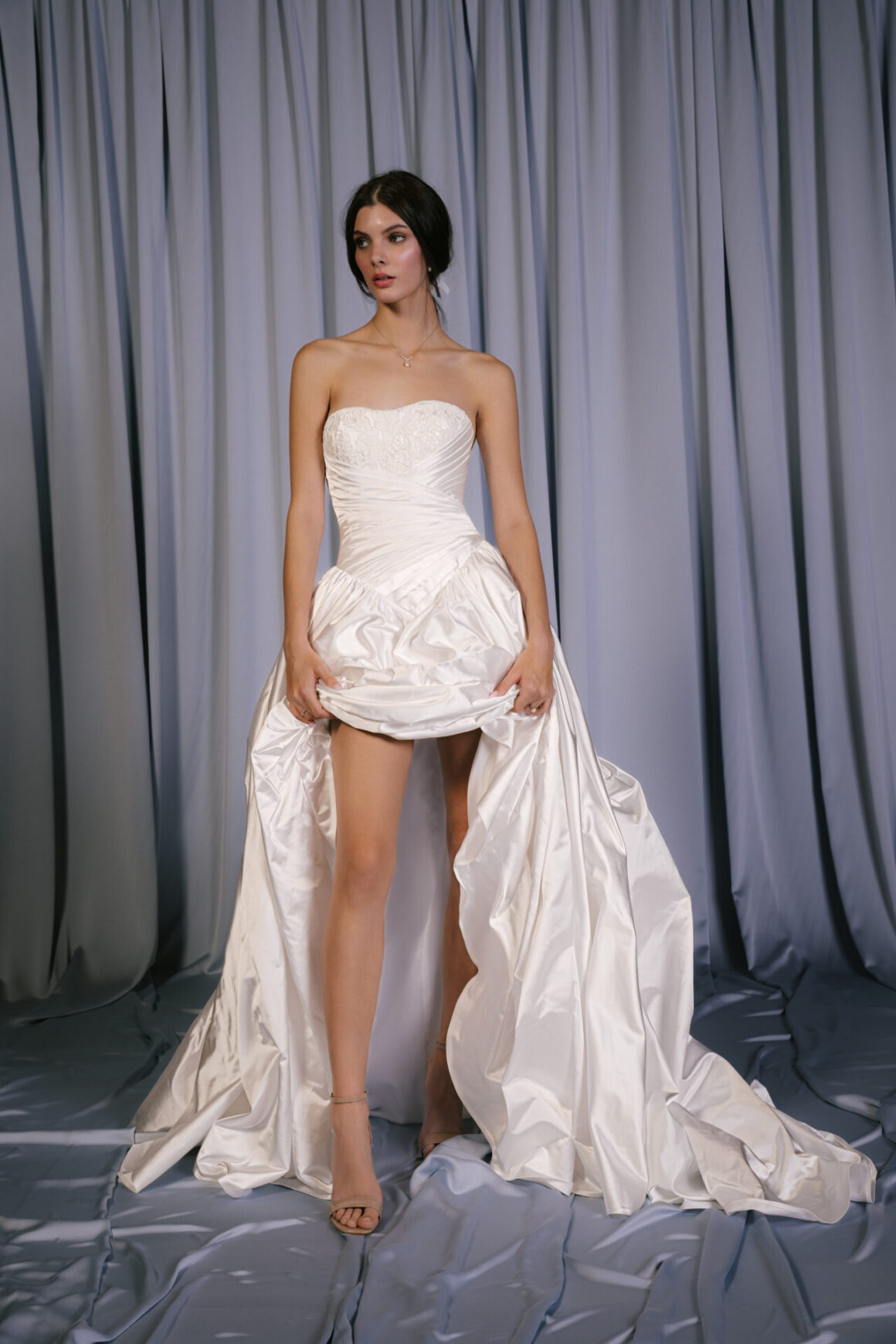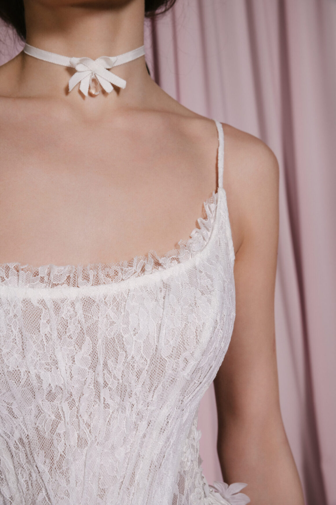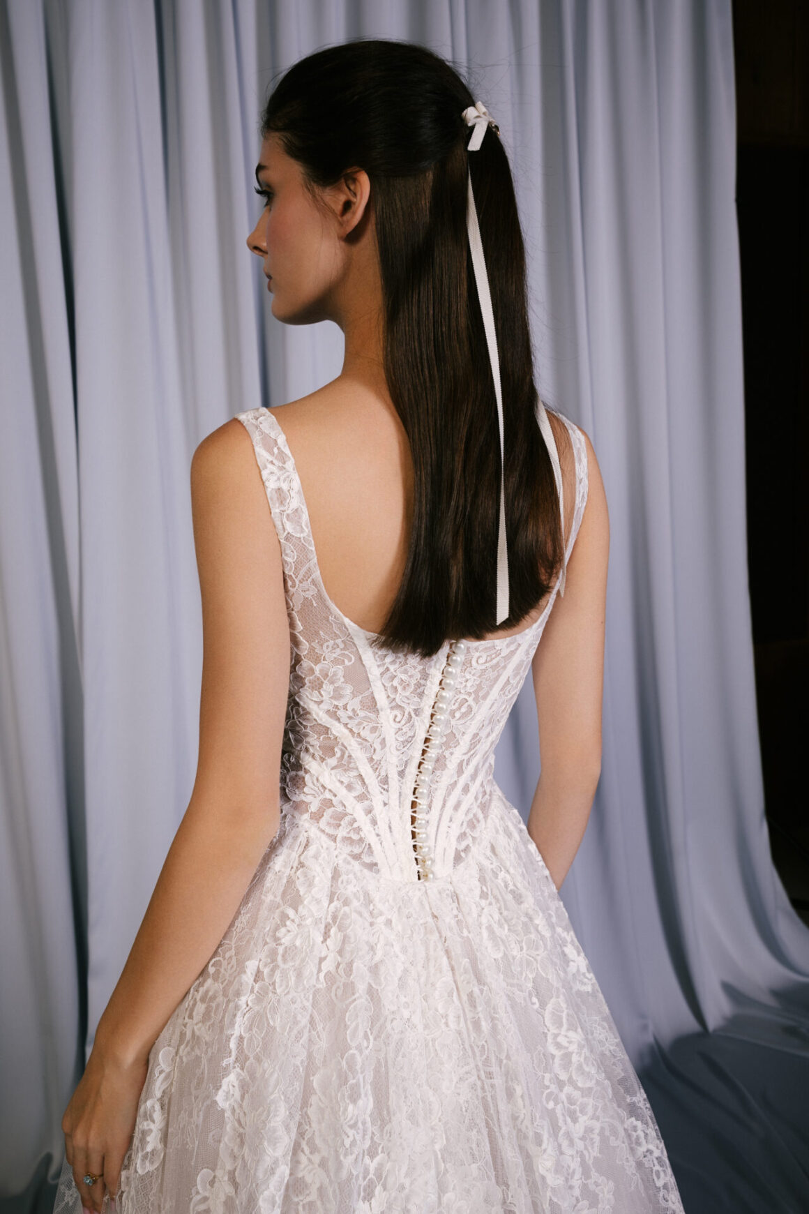 One of the defining ideas behind the collection is personalisation. For Daalarna, a wedding dress is never a finished object in itself, but the result of a shared creative process in which the bride takes an active role. Interchangeable elements, transformable details, and thoughtfully layered accessories allow each look to become entirely individual. With the addition of a different accessory or overskirt, a gown can be reimagined into a new silhouette altogether — perfect as a party dress, a ‘menyecske dress’or a piece that can continue to be worn long after the wedding day.
