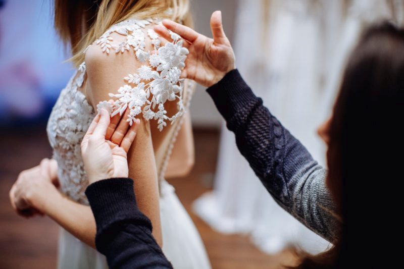 When having your own dress made, you can decide everything down to the last detail, you don’t have to settle for the ready-made models. You envisage what lace you would like to wear, you choose the appliques that appeal to you most, whether you would like some layers of organza, and which of the many shades of white works best for you.